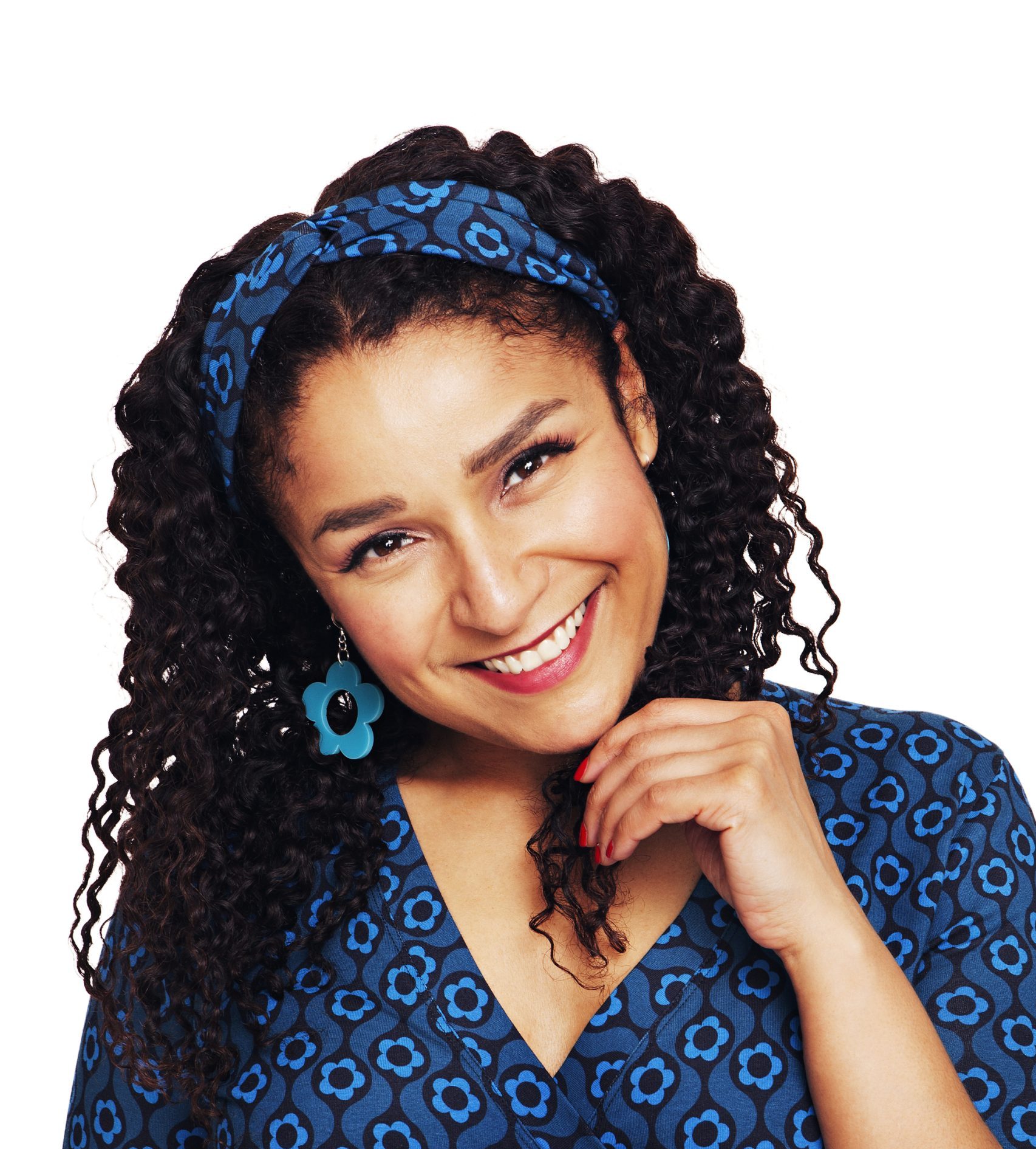 Gorgeous blue headband with a rerto daisy print.