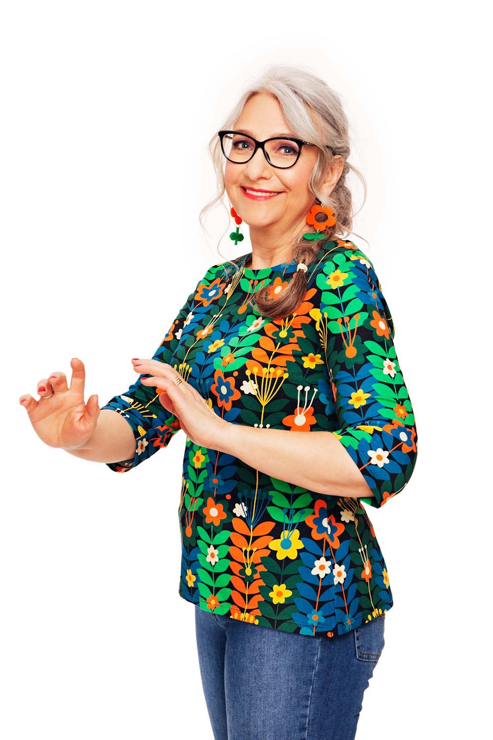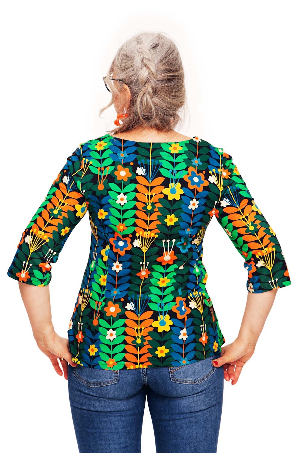 Vendela is an A-line knit top with three-quarter sleeves and a round neckline. The model is tighter at the top, wider at the bottom and has slits in the sides, which gives it a nice fit. Perfect for jeans or a skirt!