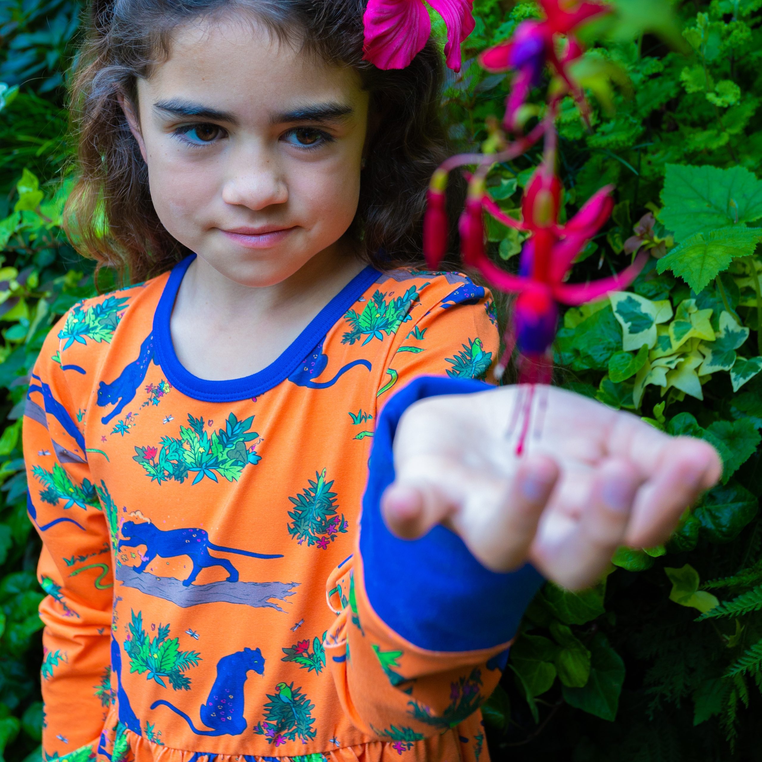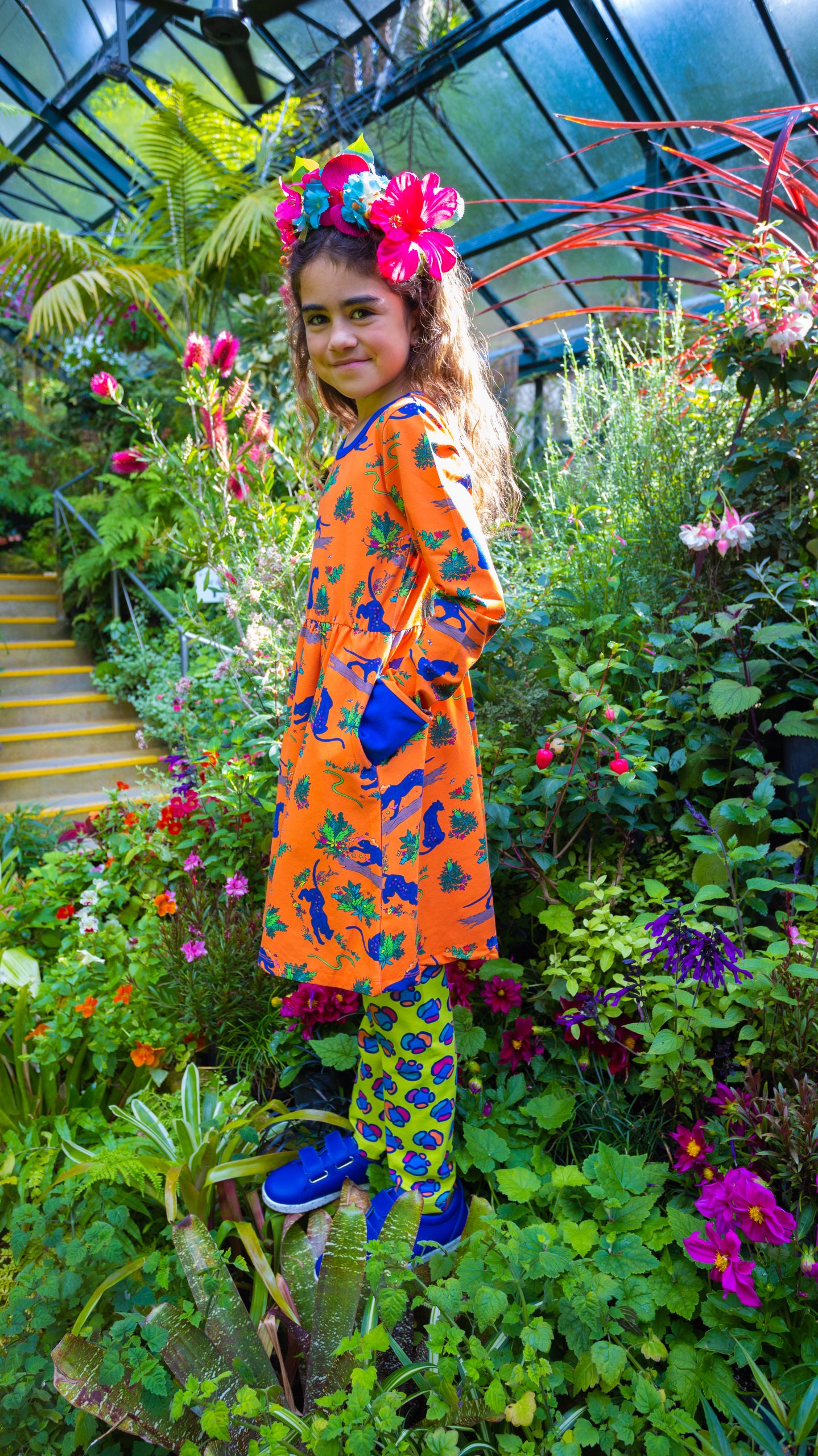Divya mixes a flower collage, and before long, she’s painted herself a daylight camouflage!