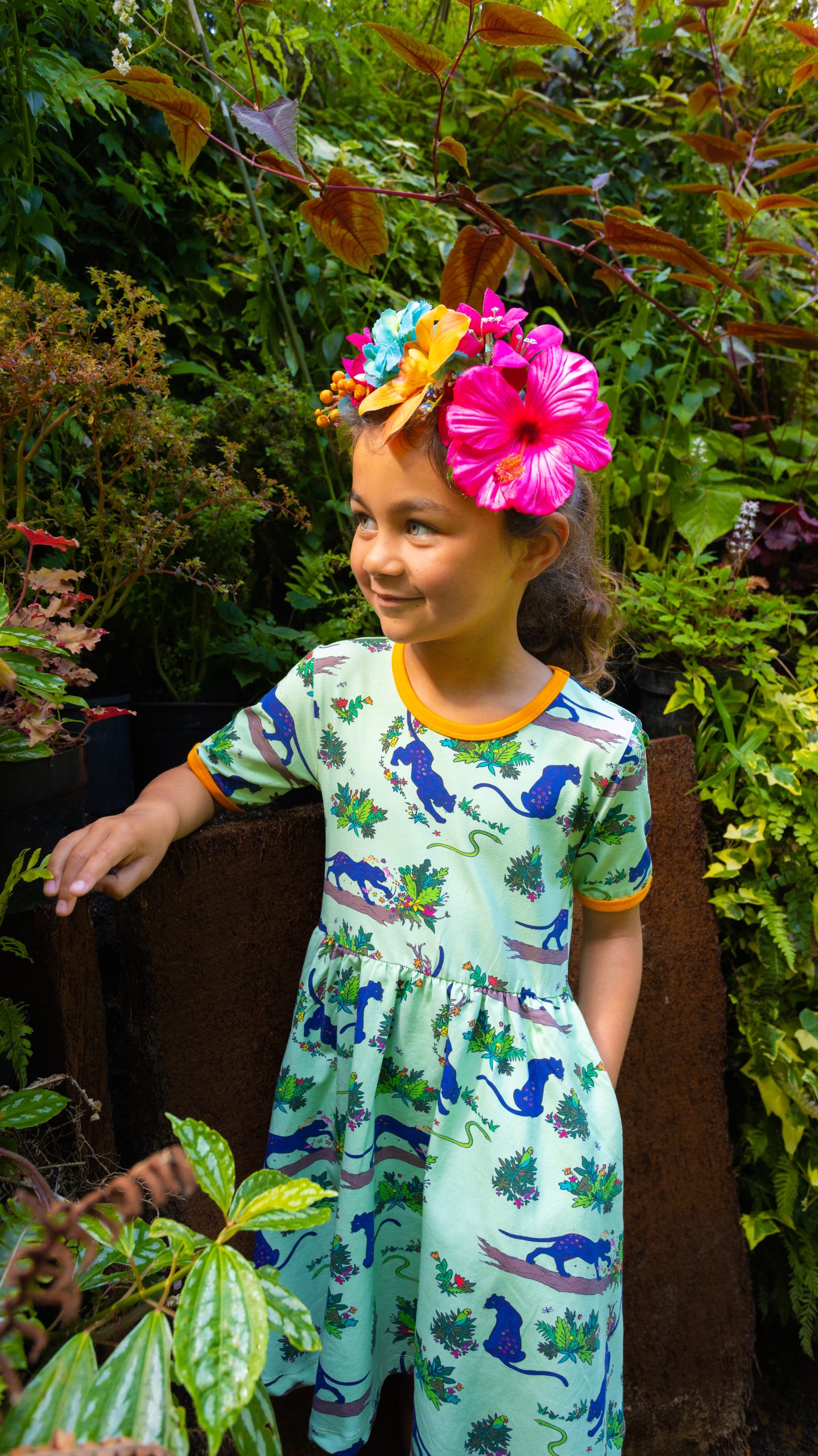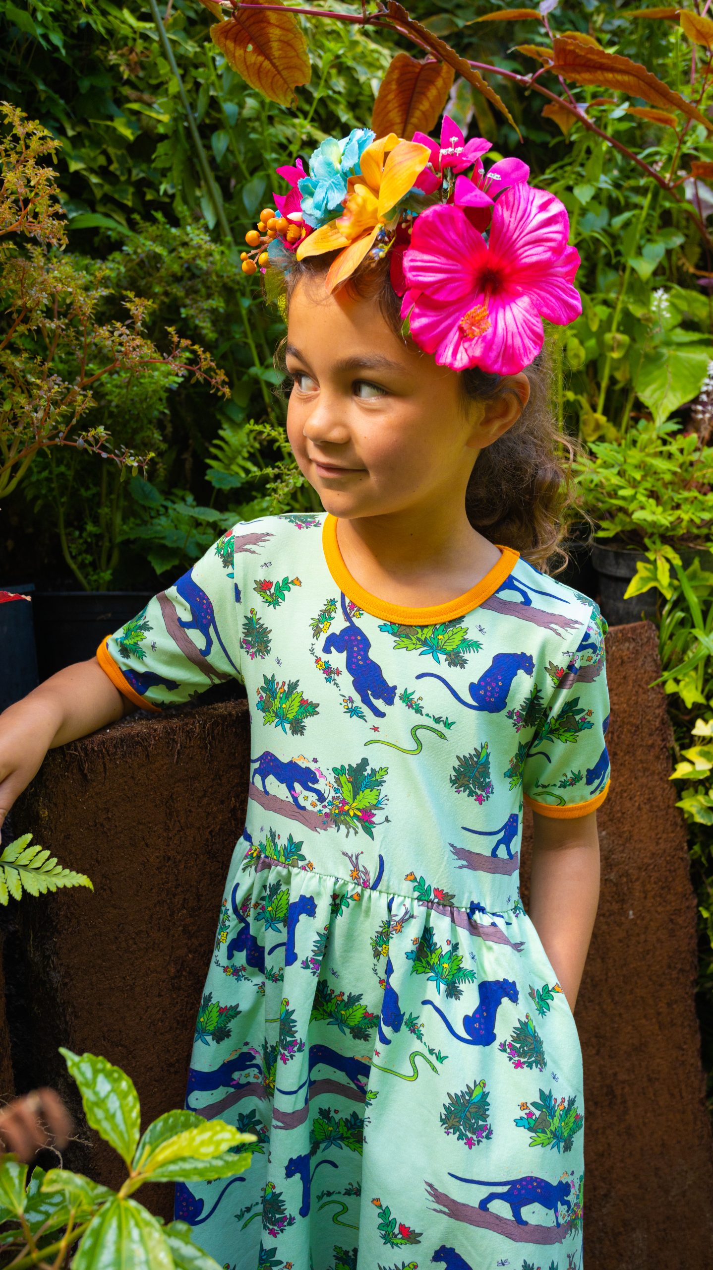 Divya mixes a flower collage, and before long, she’s painted herself a daylight camouflage!