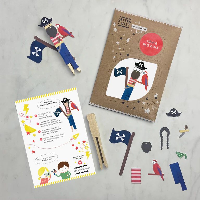Perfect for three years & upwards, children will love to create their very own superhero. Gently push the pre cut shapes out from the sheets, then choose the accessories you love the most. The superhero comes with jumpsuit, cape, shield, mask & a choice of pants, together with a choice of skin tones & hairstyles for further personalisation. Stick the chosen items onto the peg with the glue dots provided to create your doll & enjoy the superhero fun.
