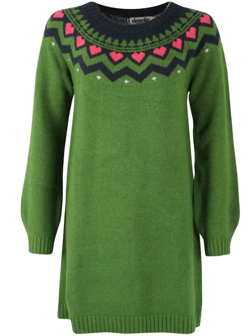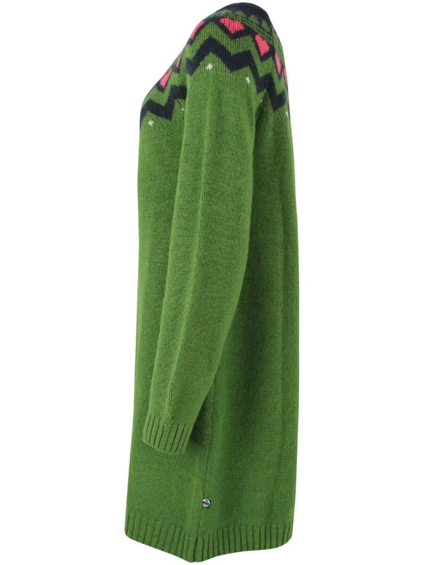 Danesukkertop is a lovely sweater dress that will become an instant favorite in the wardrobe! The dress has a beautiful Nordic pattern, and looks great on the body. The dress is in gorgeous materials, and provides both warmth, comfort and movability when you wear it. Combine the dress with a pair of pretty boots or cool sneakers to create an elegant and feminin look. 50% Wool, 25% Viscose, 25% Cotton