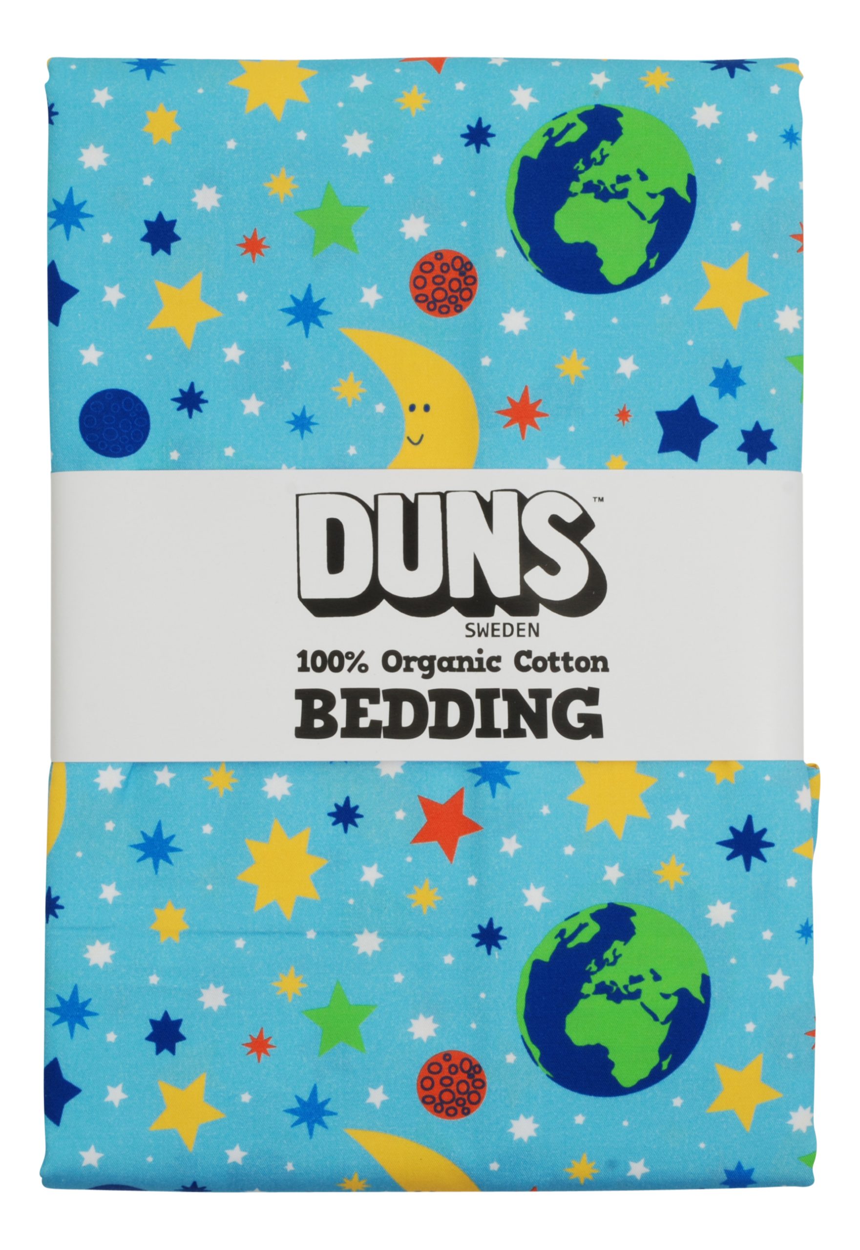 This single bedding set is just stunning, the gorgeous Mother Earth print featuring crescent moons, Earth, stars and planets on a beautiful pale blue background.