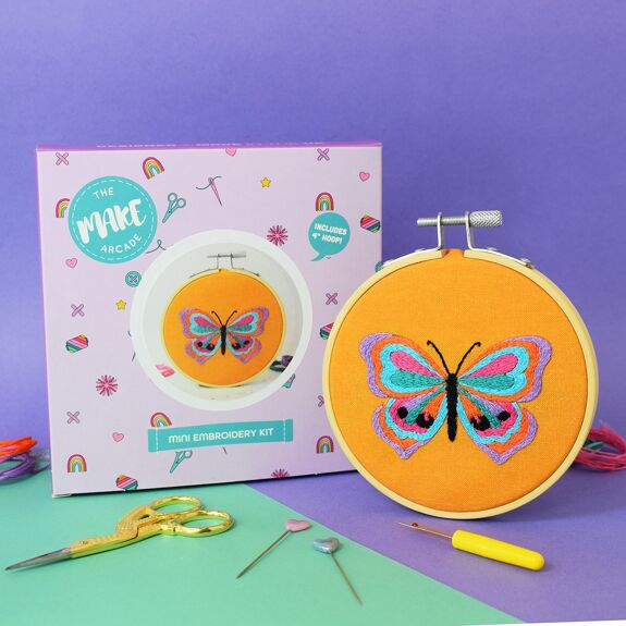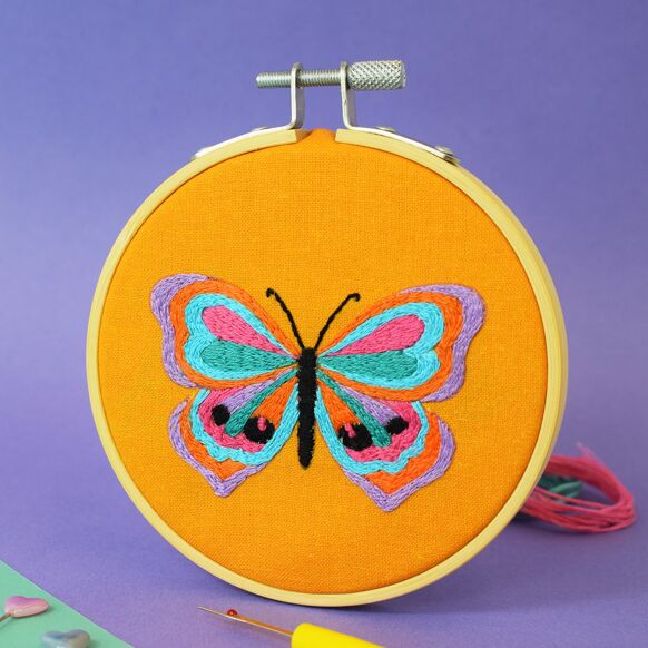 If you love colour, this is a riot of kaleidoscopic shades of embroidery in the form of a butterfly. It’s a little bit psychedelic and so fun to fill in all the bold colours and practise your embroidery techniques at the same time!