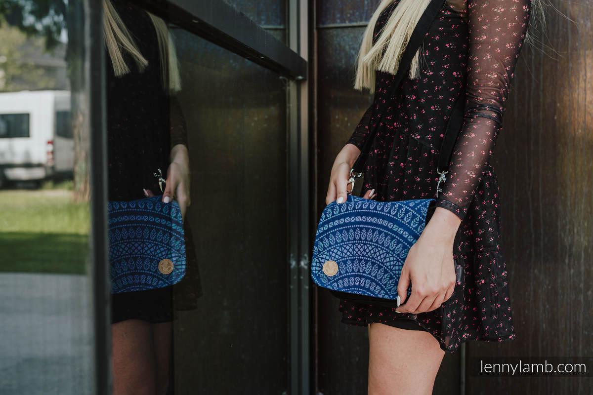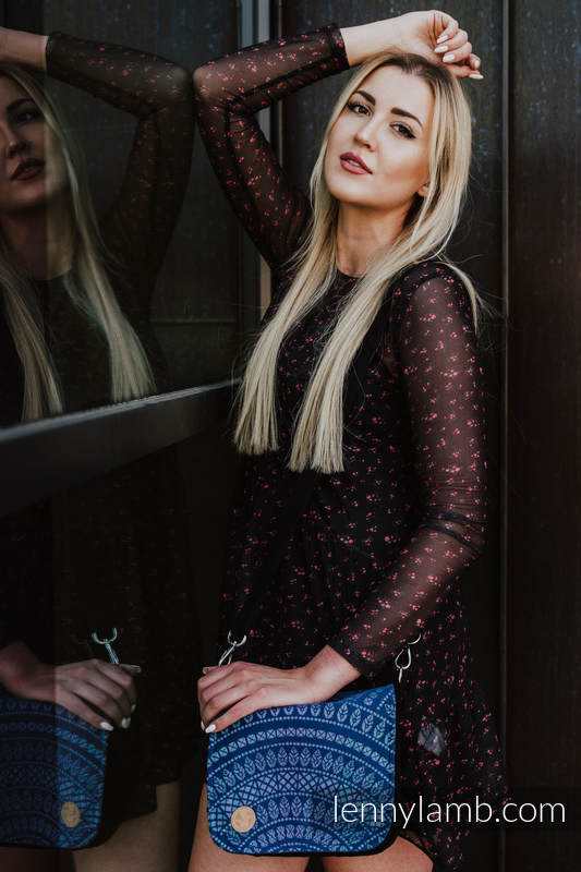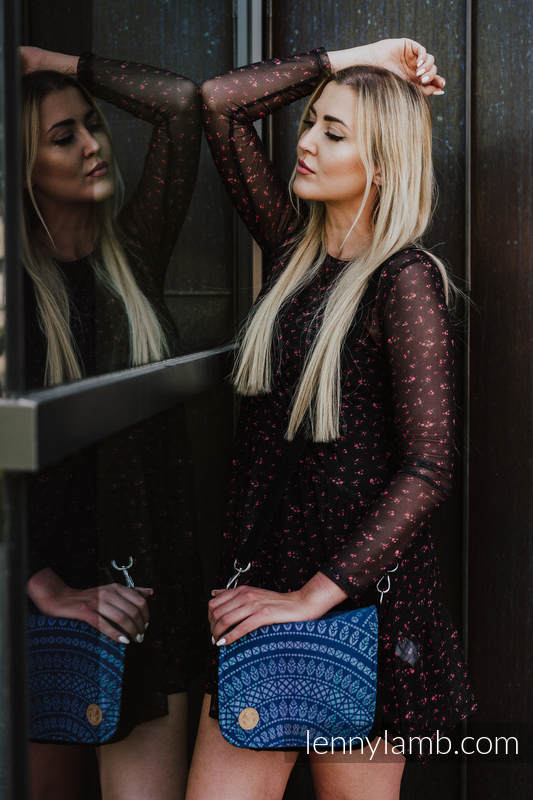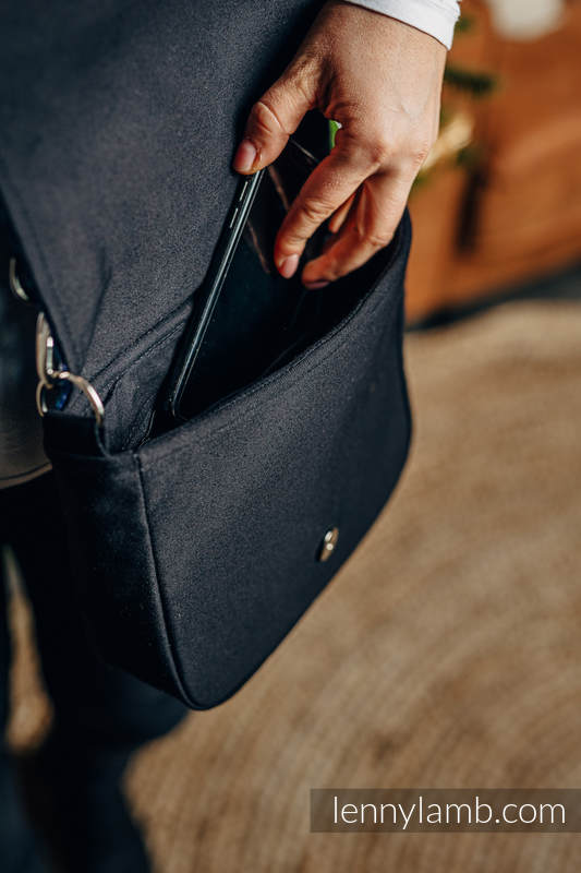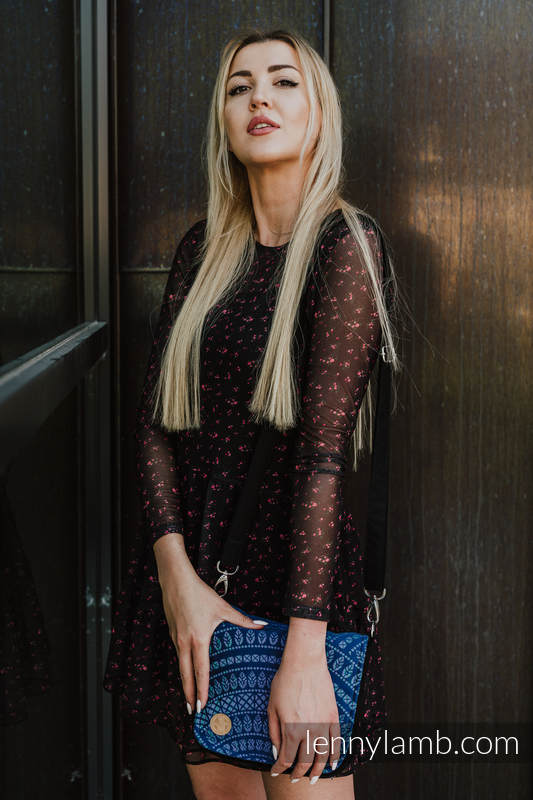 Waist Bag/ Bag 2in1 CITY – elegant design accentuated with a woven wrap fabric panel, stiffened, lining inside. Perfect size – it will contain all the essentials; comfortable magnet fastening. Apart from the main pocket, there are two smaller ones (perfect for a cell phone) and one zippered pocket inside – they will make it easier for you to manage the space your own way. There are two belts in the set – a longer one (83-148cm) – for wearing the bag on the shoulder and a shorter one (44-71cm) – for wearing the bag as a waist bag.