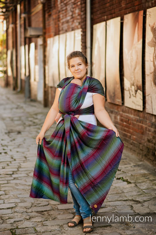 The width of the baby wrap is about 60-70 cm. It is available in sizes 4 (XS, 3.6m) to 8 (XL, 6.0m) in length, which makes it suitable for people of different sizes and figures. Learn more