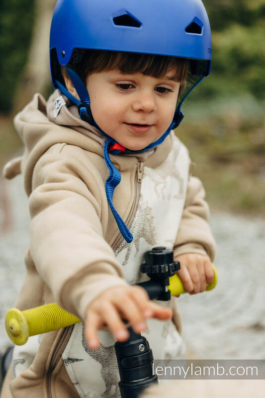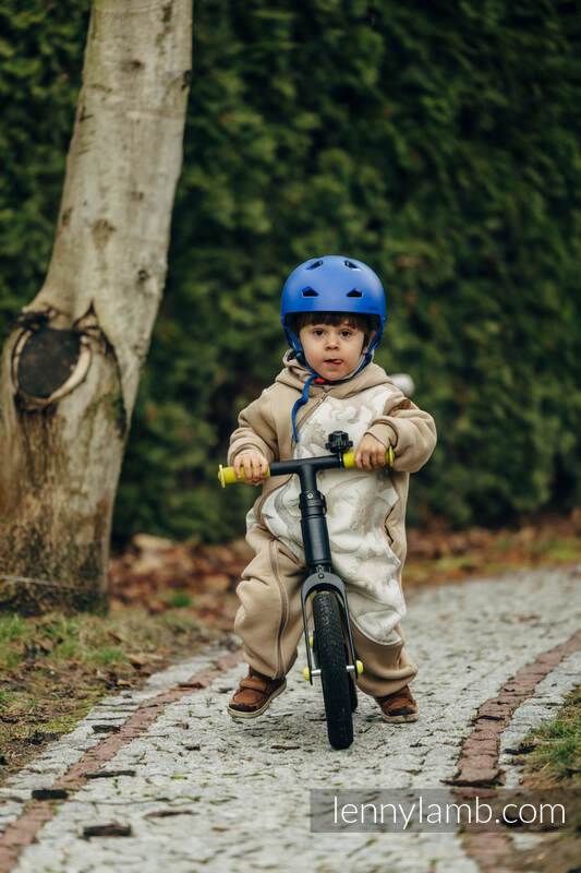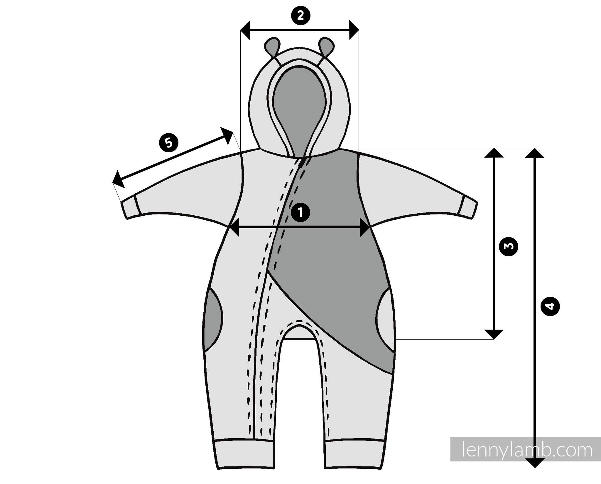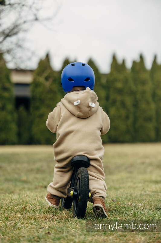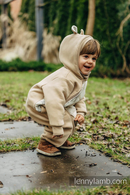 A bear romper from LennyLamb is a lovely transitional hooded jumpsuit. Its special cut – loose on the hips of an infant makes putting the kid in a wrap easier. It is made of a high-quality soft and warm soft knitted fabric. Colorful and patterned finishes are made of a wrap fabric make the clothes look more cheerful. Each kid will go for a walk with a smile.