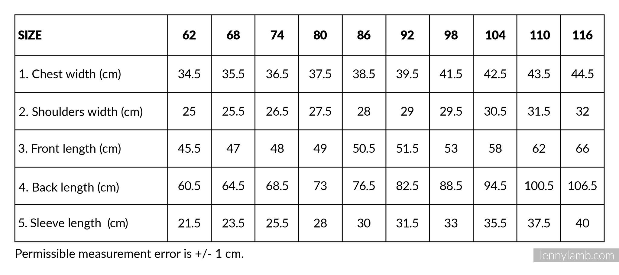 The size given in the description refers to the baby’s height.