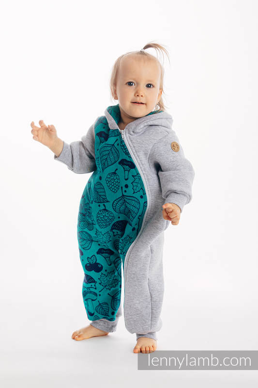 A bear romper from LennyLamb is a lovely transitional hooded jumpsuit. Its special cut – loose on the hips of an infant makes putting the kid in a wrap easier. It is made of a high-quality soft and warm soft knitted fabric. Colorful and patterned finishes are made of a wrap fabric make the clothes look more cheerful. Each kid will go for a walk with a smile.