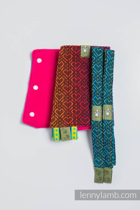The set is comprised of a pair of Drool Pads and Reach Straps which will make it easier for you to pull the hood on your baby’s head when back carrying 🙂