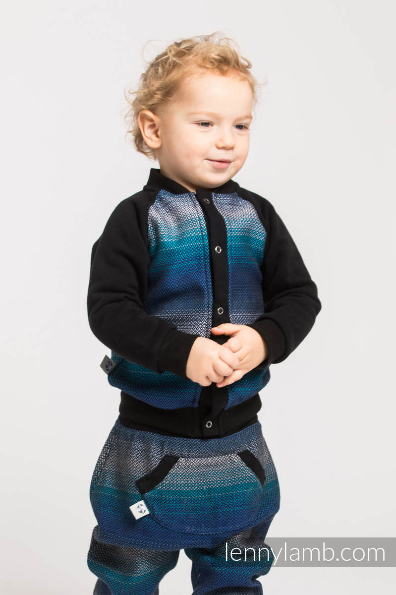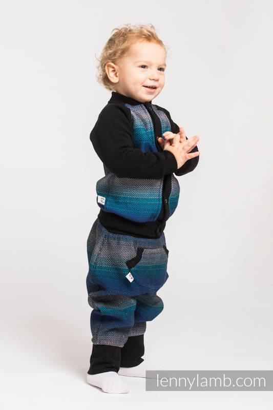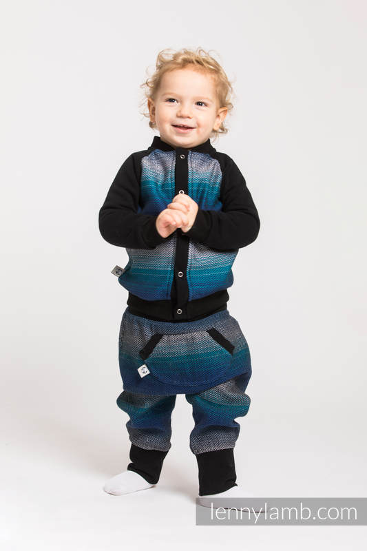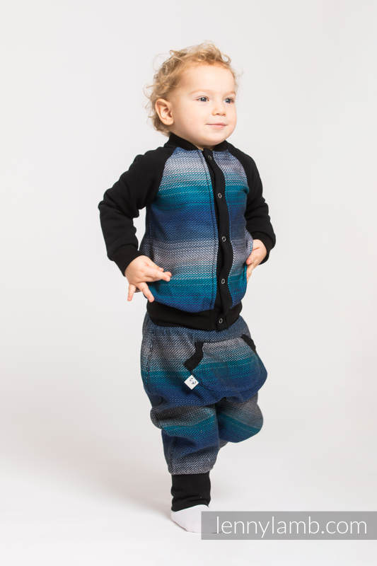 Bomber jacket. or maybe a baseball jacket? No matter the name, it brings a smile to a face! Fashionable, stylish, comfortable. Colorful threads are weaved in the weaving studio into a full-color wrap – now, they play the main role in the most iridescent sweatshirt. The combination of the high-quality LennyLamb wrap fabrics and 100% cotton jersey will give perfect designs, in which your kid will look stunningly.