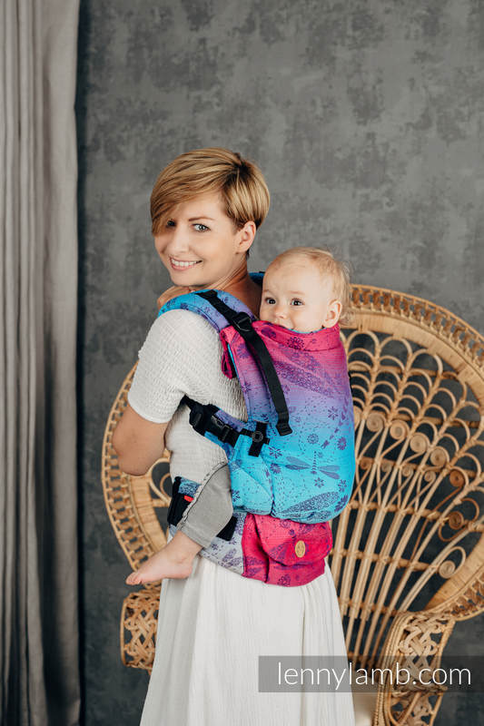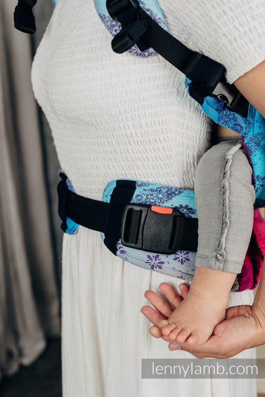ATTENTION: Actual colors and pattern placement may vary from pictures. The color of the buttons can vary from the one presented in the pictures. Depending on the LOT of the product, the straps regulating the size of the carrier’s panel can be solid black or in the colorway of the carrier.
