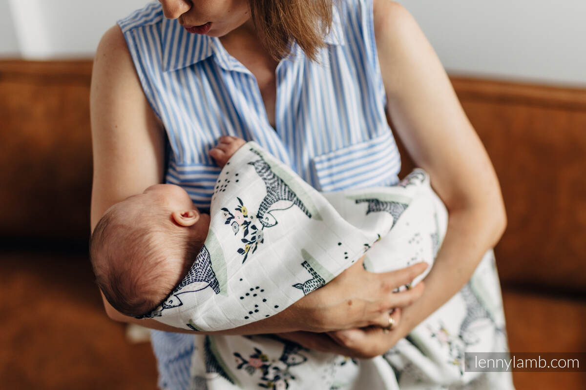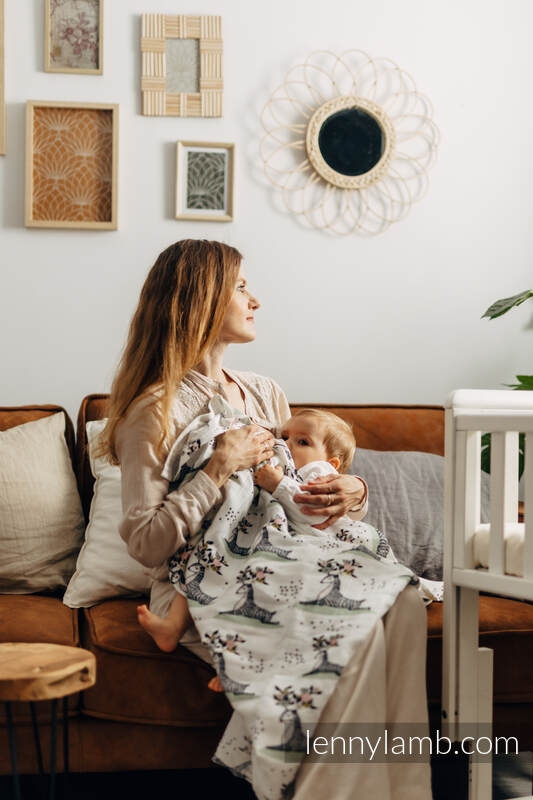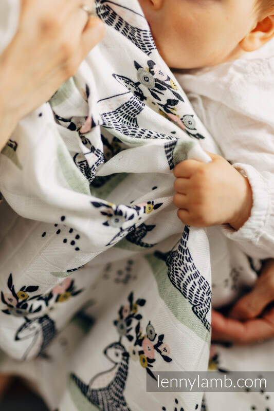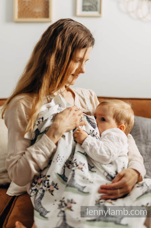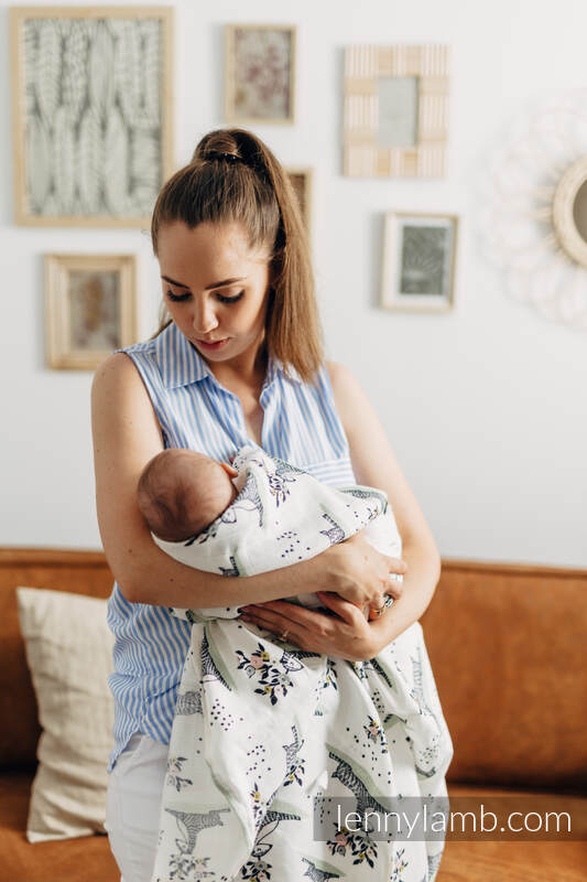 A big Swaddle Blanket is made of bamboo viscose with natural antibacterial and antifungal properties. Soft, pleasant to the touch, gives a nice feeling of coolness. It absorbs water well and dries instantly. It will prove itself as a blanket, towel, pareo, cover during breastfeeding, changing mat, protection from the sun. You can easily turn it into a dress. It can also have many different purposes, dictated by your imagination.