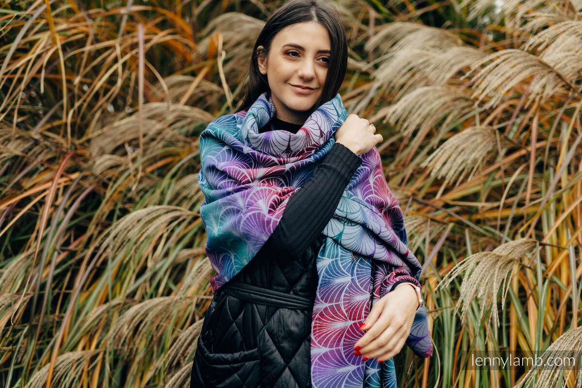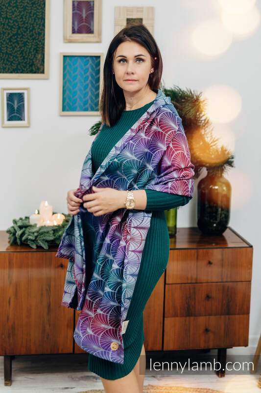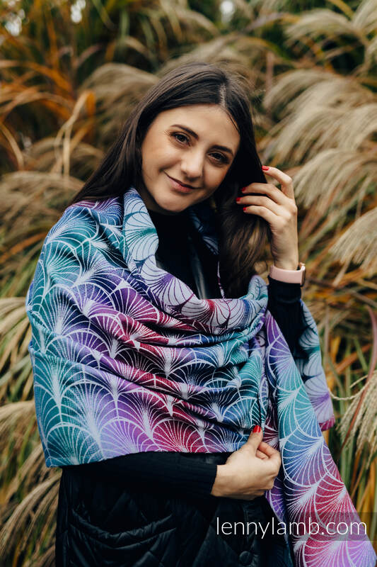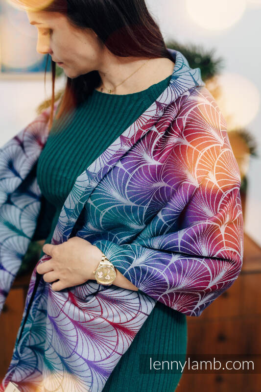 A shawl is made of wrap fabric, the length: 2m, the width of a wrap (0,6 – 0,7m). Just like a wrap, the shawl is made of fabric woven in LennyLamb. For those who ended their journey with babywearing but do not want to part with beautiful fabrics. It will complement your outfit, protect from cold or the sun and will simply bring pleasure.