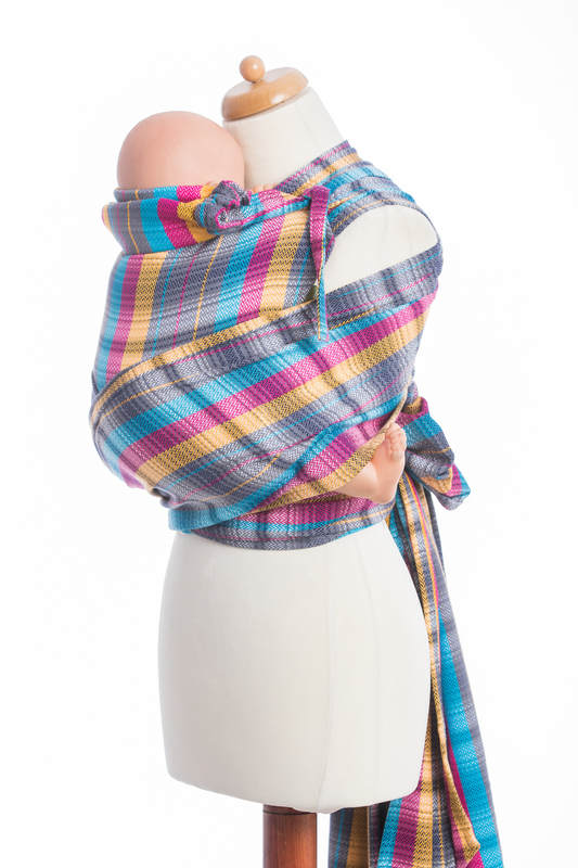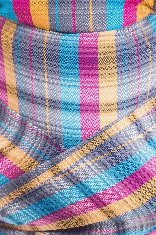 Mini size – recommended for children aged from 4 to 18 months. The maximum weight of a child is up to 18kg. Toddler size – recommended for children over 10 months of age. The maximum weight is up to 20kg. WrapTai carrier is a special type of a carrier, since it can be used earlier than other carriers. It is possible because of its special construction. Its shoulder straps are made of a wide strip of a wrap, which stabilises the position of a baby on the sides.