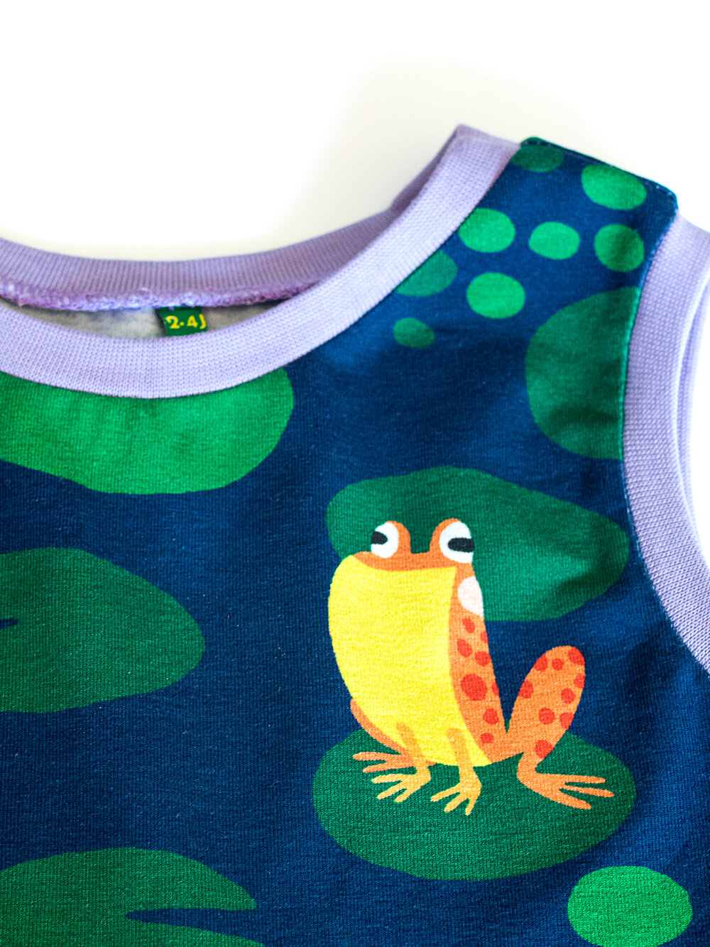 The dresses are made of 95% organic cotton and 5% elastane fabric that is GOTS certified. The elastane ensures the fabric stays stretchy longer. I encourage washing them cold for sustainability’s sake, but the dresses will do well with temperatures up to 60°C/140°F for those days when you do need it!