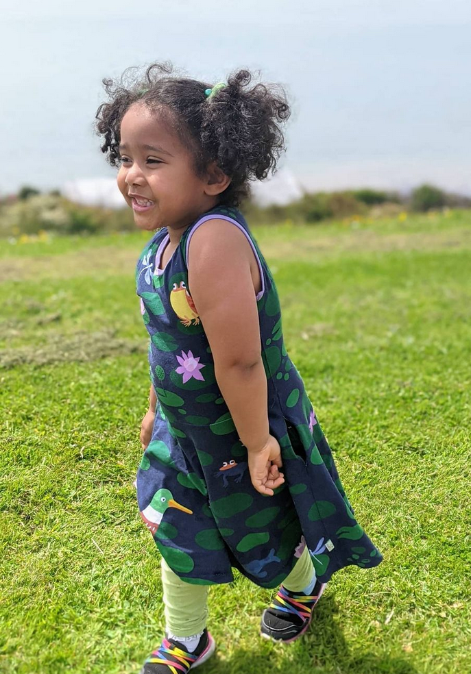 This is an organic cotton dress for toddlers and kids, the sizing ranging from 92/2Y to 120/7Y.