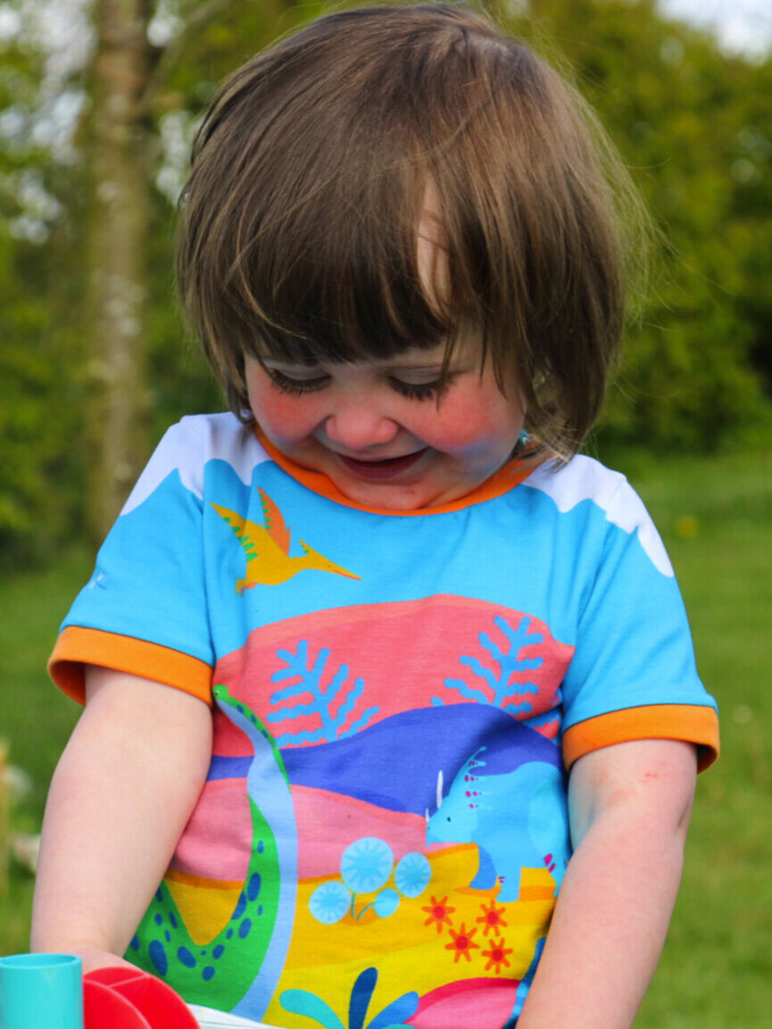All Merle clothes are designed with play in mind, and are meant to fit well for a variety of children bodies. These t-shirts have a comfortable cut with a little extra length.