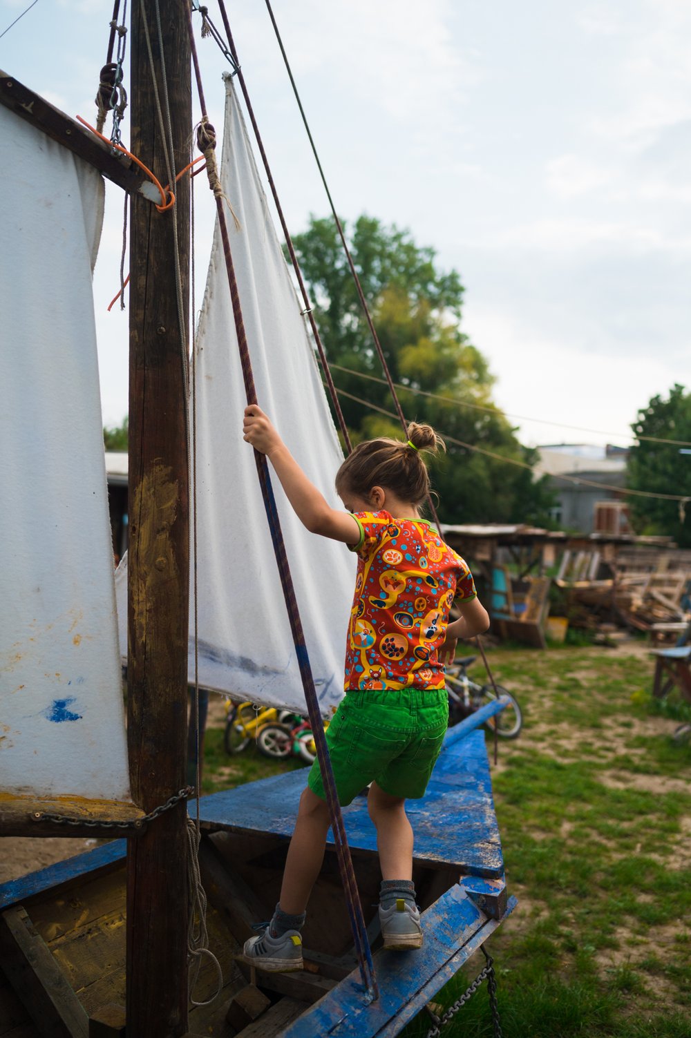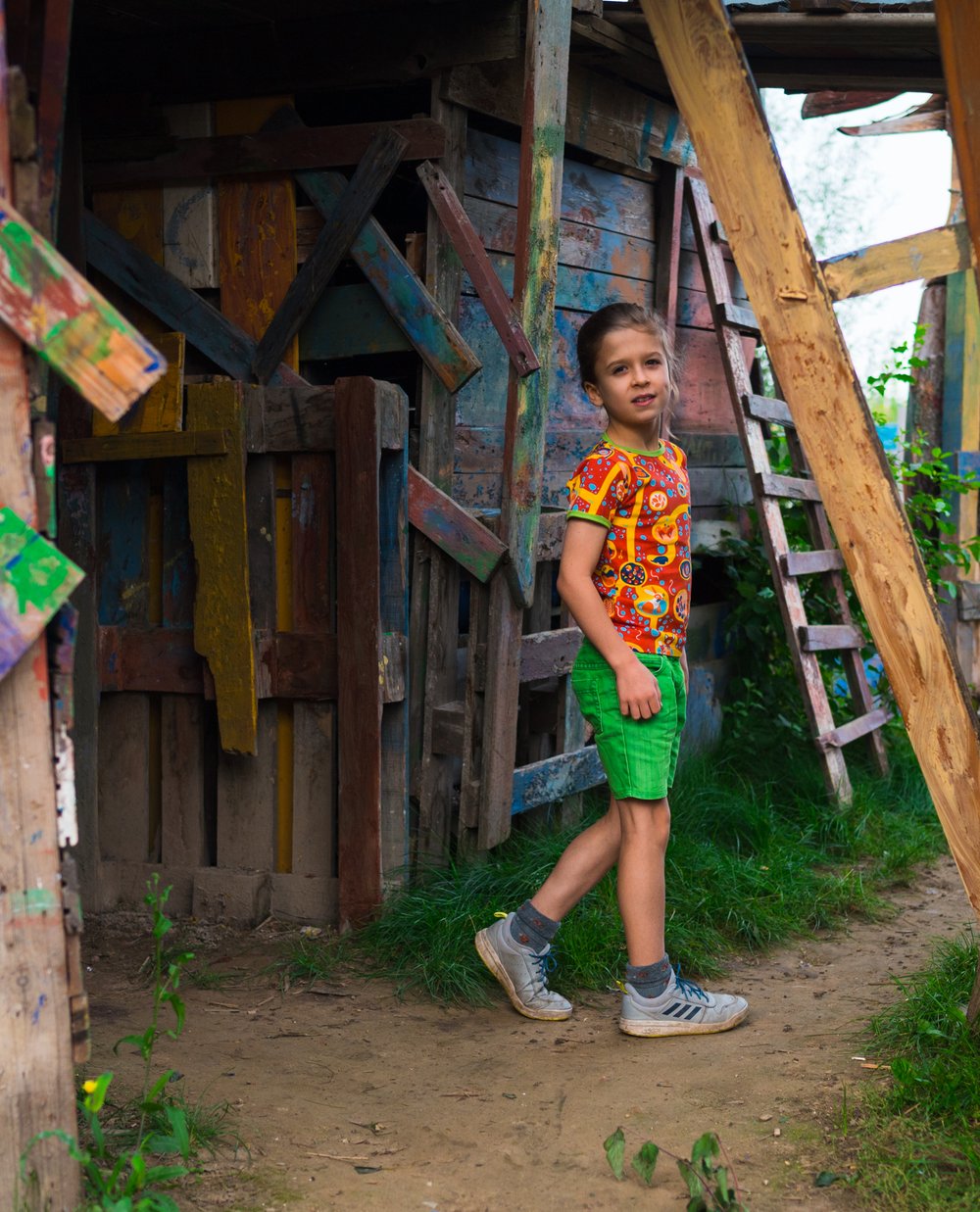 All Merle Kids’ clothes are designed with play in mind, and are meant to fit well for a wide range of little bodies. The t-shirts in size 2-3 year have an envelope neckline for easy on-and-off, while the bigger sizes have a nice round neckline. Since our labels are printed right on the inside of the fabric, children with sensitive skin won’t have to deal with scratchy label.
