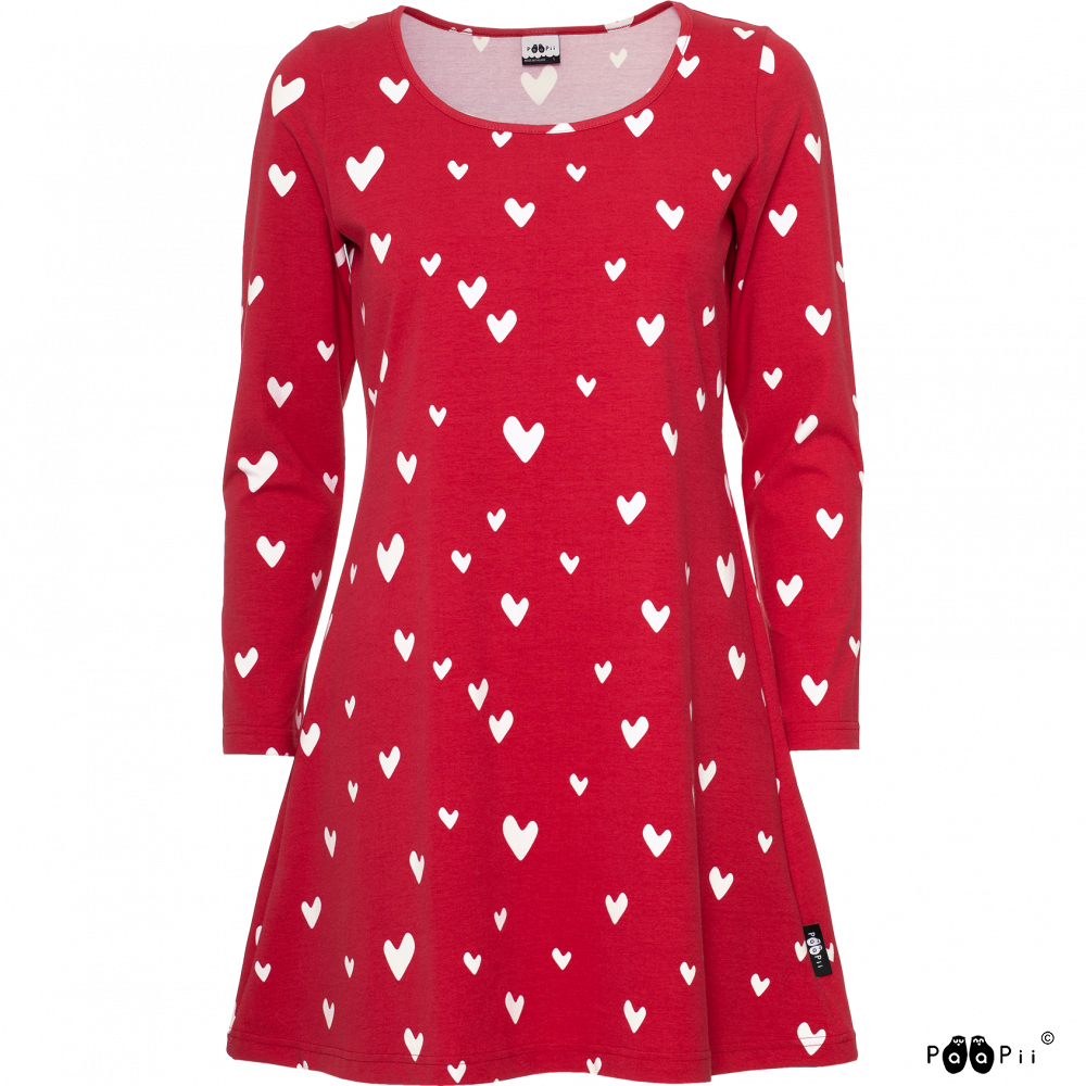 This tunic is A-lined with long sleeves and it extends below the pelvis. It is made of soft organic jersey, making it comfortable for every day use. Because the pattern is clear-lined, the print design pops wonderfully out.