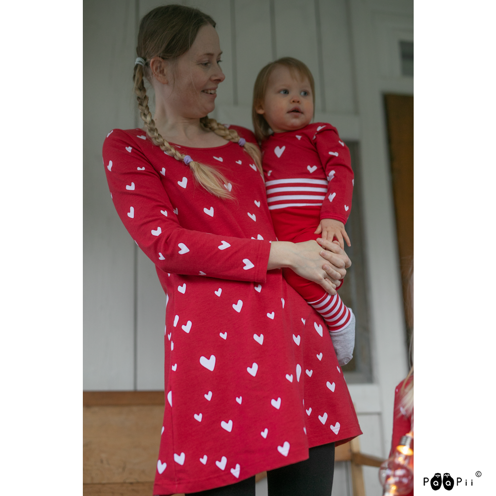 This garment is made with love and solar power in our own sewing factory in Finland. The material is organic jersey, which is made in a GOTS – and Öko tex -certified factory in Lithuania. The GOTS -certificate guarantees that the fabric is made organically from start to finish. Öko tex on the other hand guarantees that the fabric is also safe for sensitive skin.