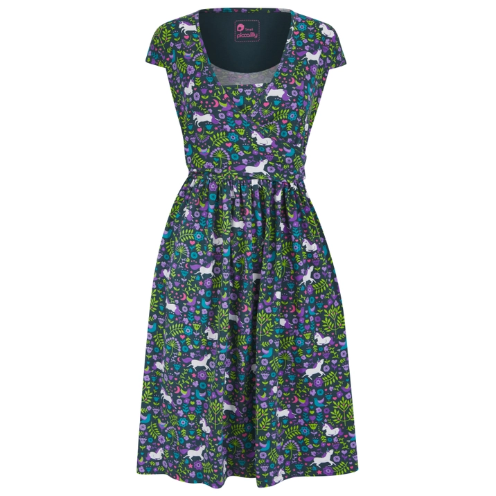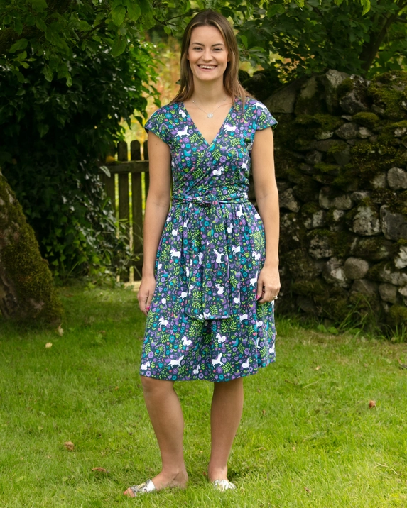Say hello to this wrap dress which features a fabulous botanical unicorn print on a slate grey base. It’s made from soft jersey cotton with just a smidgen of elastane. It allows for the perfect amount of stretch, whilst draping beautifully. This do-it-all cap sleeve dress is designed for women of all ages, shapes and sizes. Layer a cardigan over the top to finish the look. This unicorn wrap dress can be worn before, during and after pregnancy. It’s great for breastfeeding and it comes with pockets too. This style of dress is both flattering and adjustable, making it perfect for all shapes and sizes. Available in sizes XS (6-8), S (8-10), M (12-14), L (16-18) and XL (20-22).