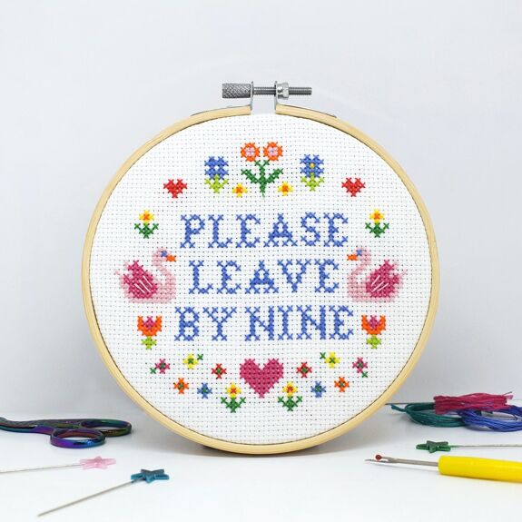 If you need to give anyone a sugar coated hint that you would like them to leave so you can get your PJs on and watch Netflix; you can now do it in cross stitch form!