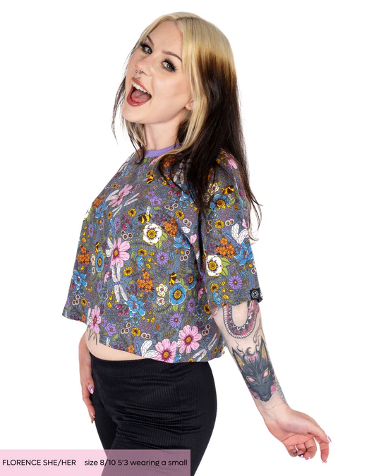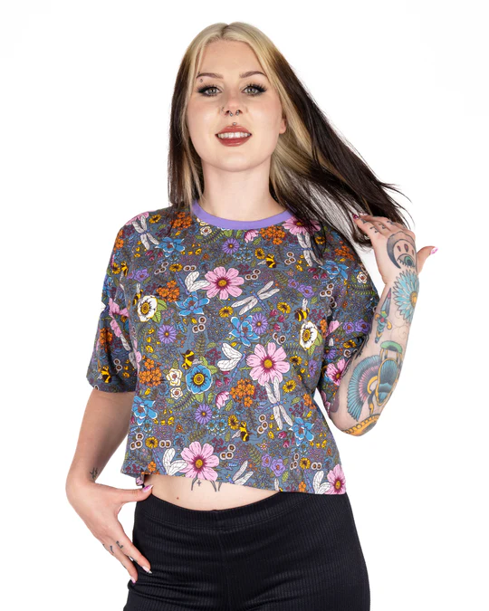 With a dreamy mix of wildflowers, dragonflies, and bees, all illustrated by Jen James Design, this magical top will be your new go to for frolicking through fields or adding a sprinkle of bug magic to your everyday look.