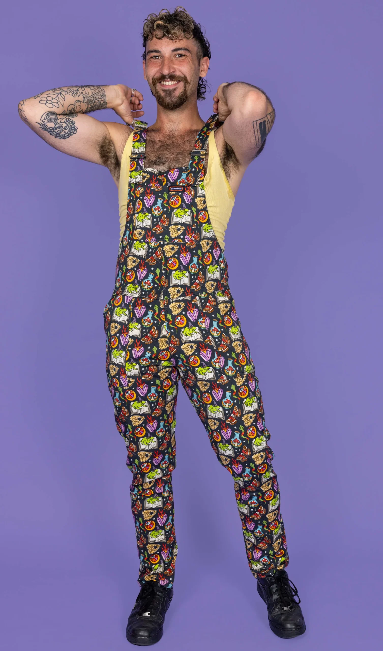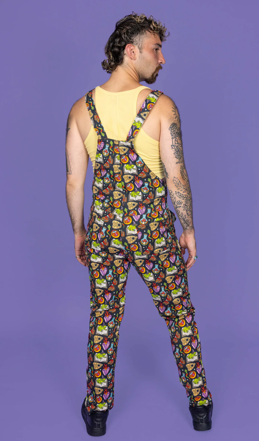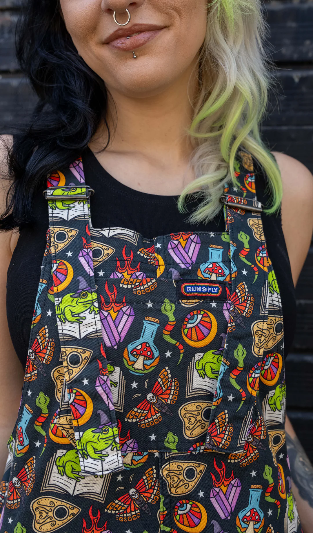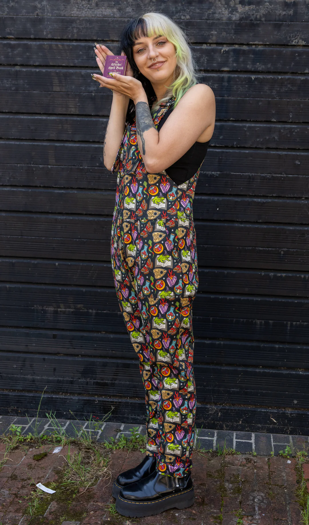 Look absolutely spellbinding in our Bewitched Stretch Twill Dungarees! Made with comfortable stretch twill fabric, these dungarees feature a whimsical witchy frog design. Perfect for adding a touch of charm to any outfit.