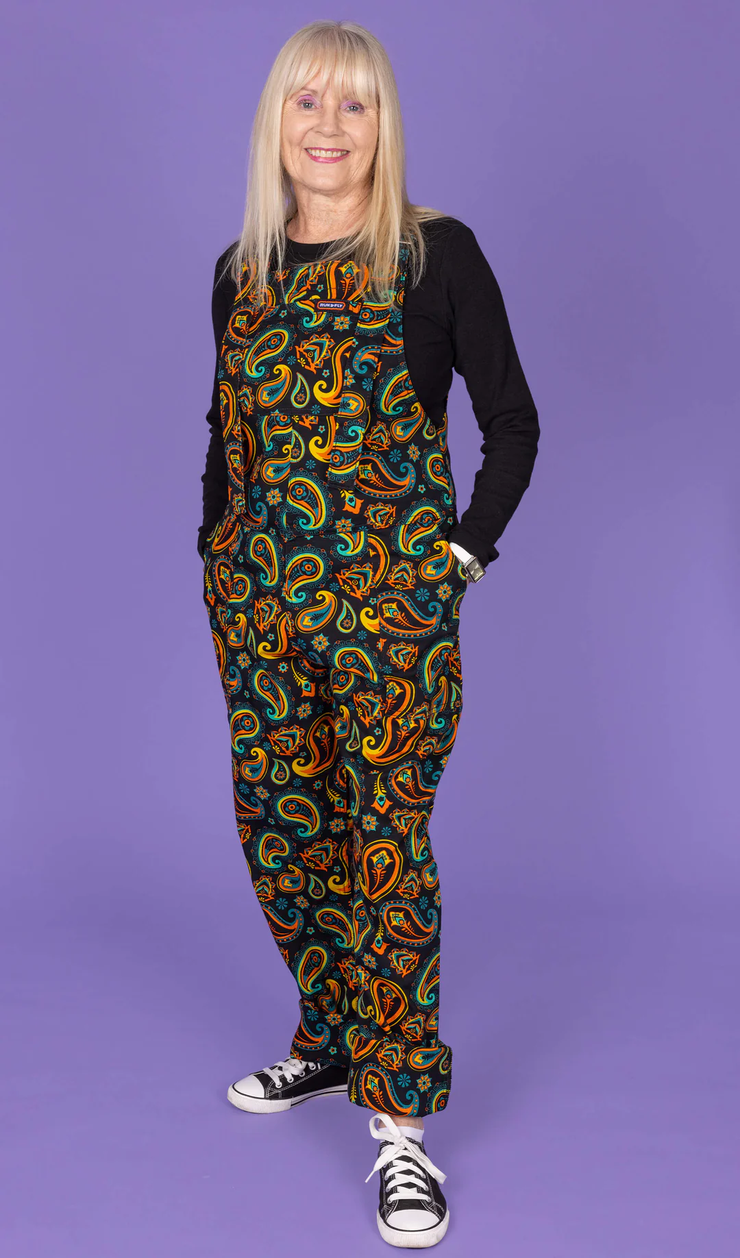 Step into a whole new level of style with our Bright Paisley Stretch Twill Dungarees! These versatile retro inspired dungarees feature a vibrant paisley pattern and a comfortable stretch twill fabric. Perfect for adding a pop of colour to any outfit and keeping the vibes groovy!