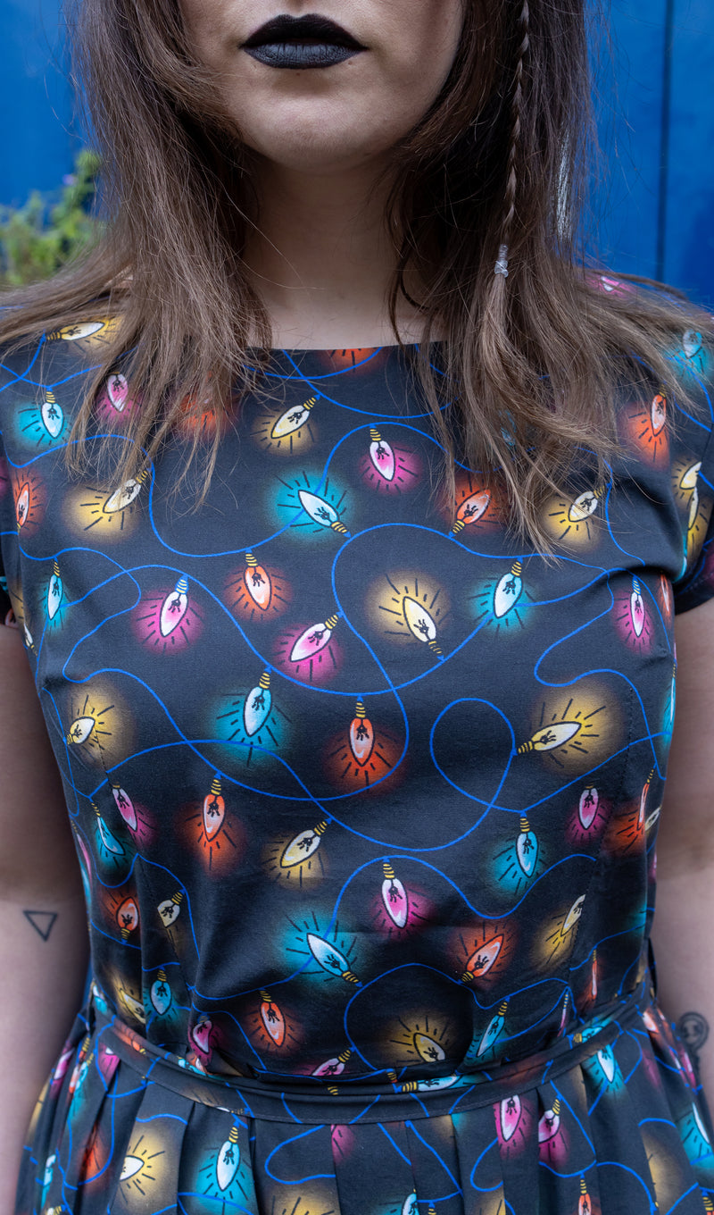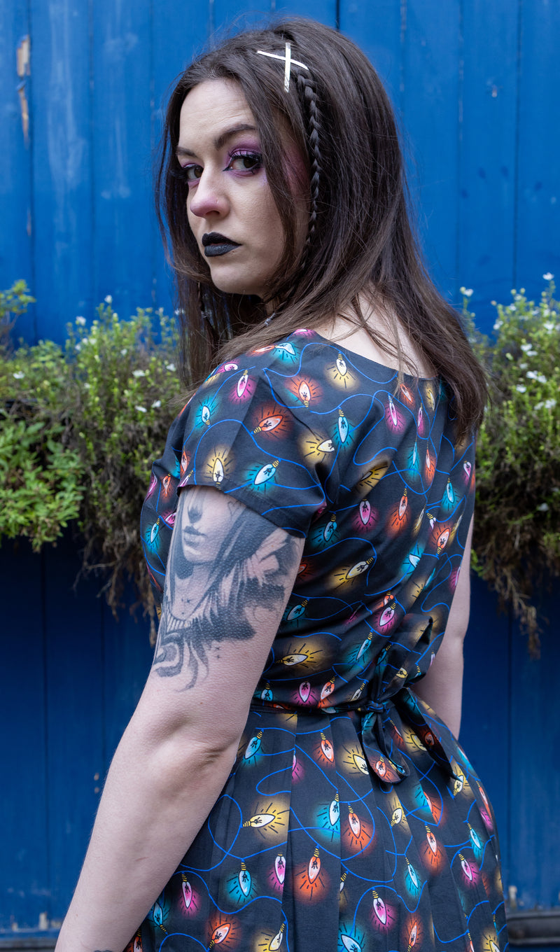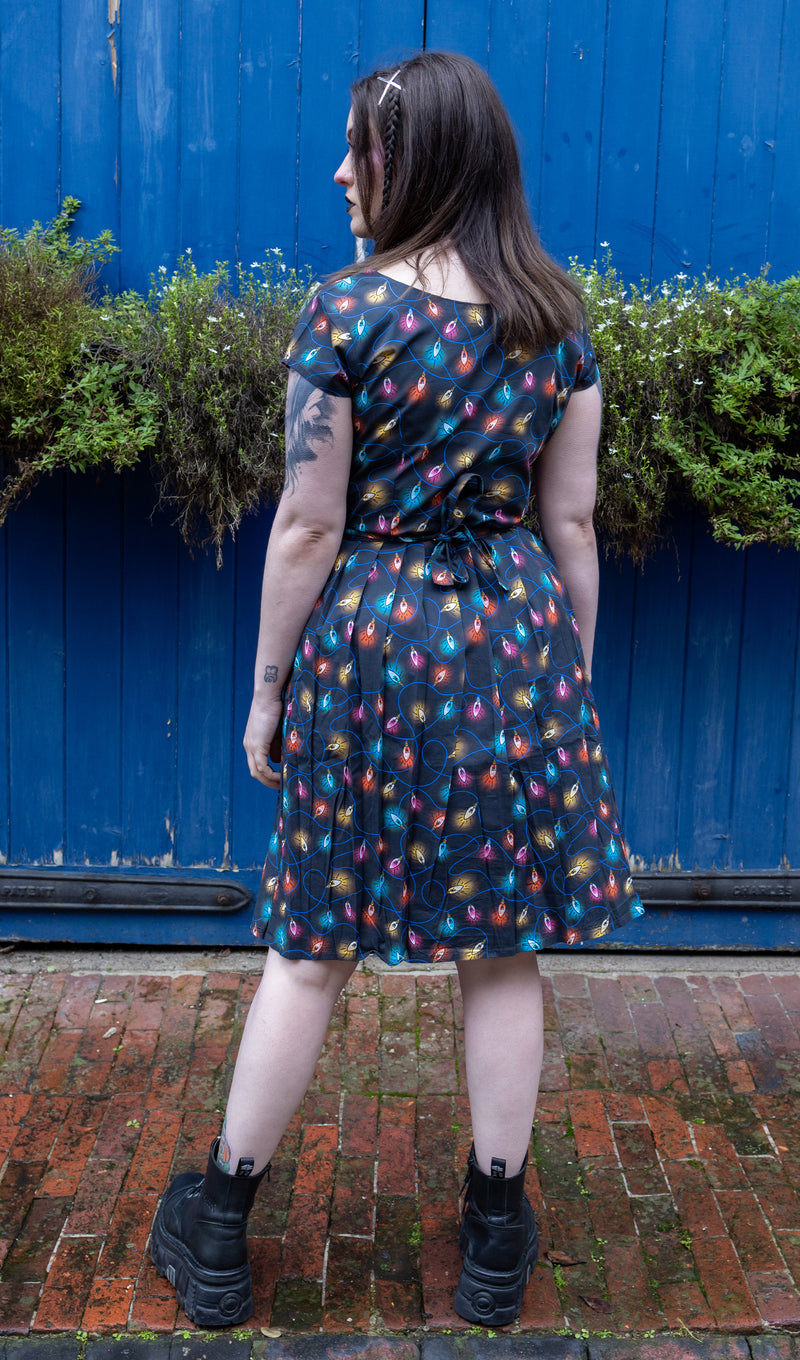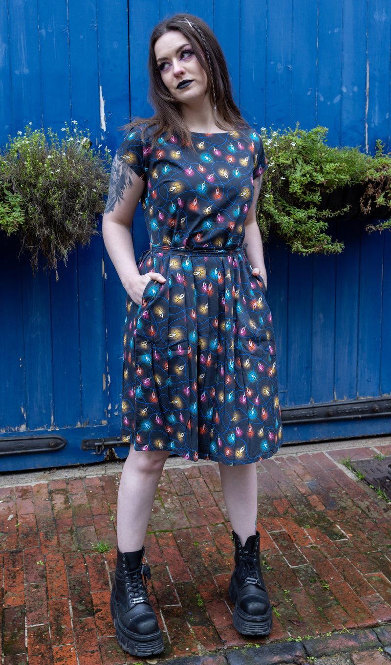 Twinkling rainbow Fairy Lights Belted Tea Dress, now with stretch and pockets. Newly improved sizing.