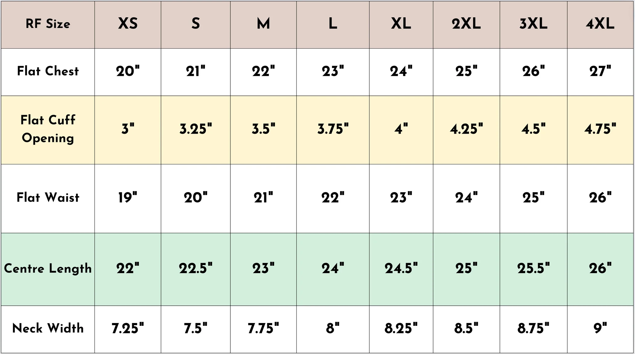 Size chart measurements are in inches of the garment, not the body they will fit. We highly recommend laying your favourite fit of clothing flat and comparing its key measurements to the chart for the best fit.