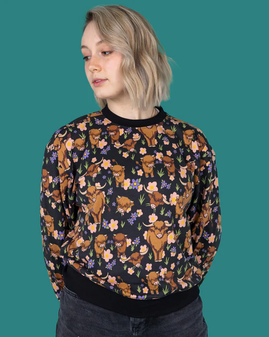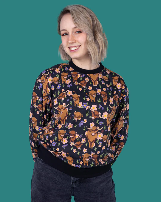 Get ready to stand out in the herd with our cosy Highland Cows Sweatshirt! This quirky and fun sweatshirt features an adorable Highland Cow print by Jen James Design that will bring a smile to your face (and keep you warm). Perfect for lounging around or adding a playful touch to your outfit.