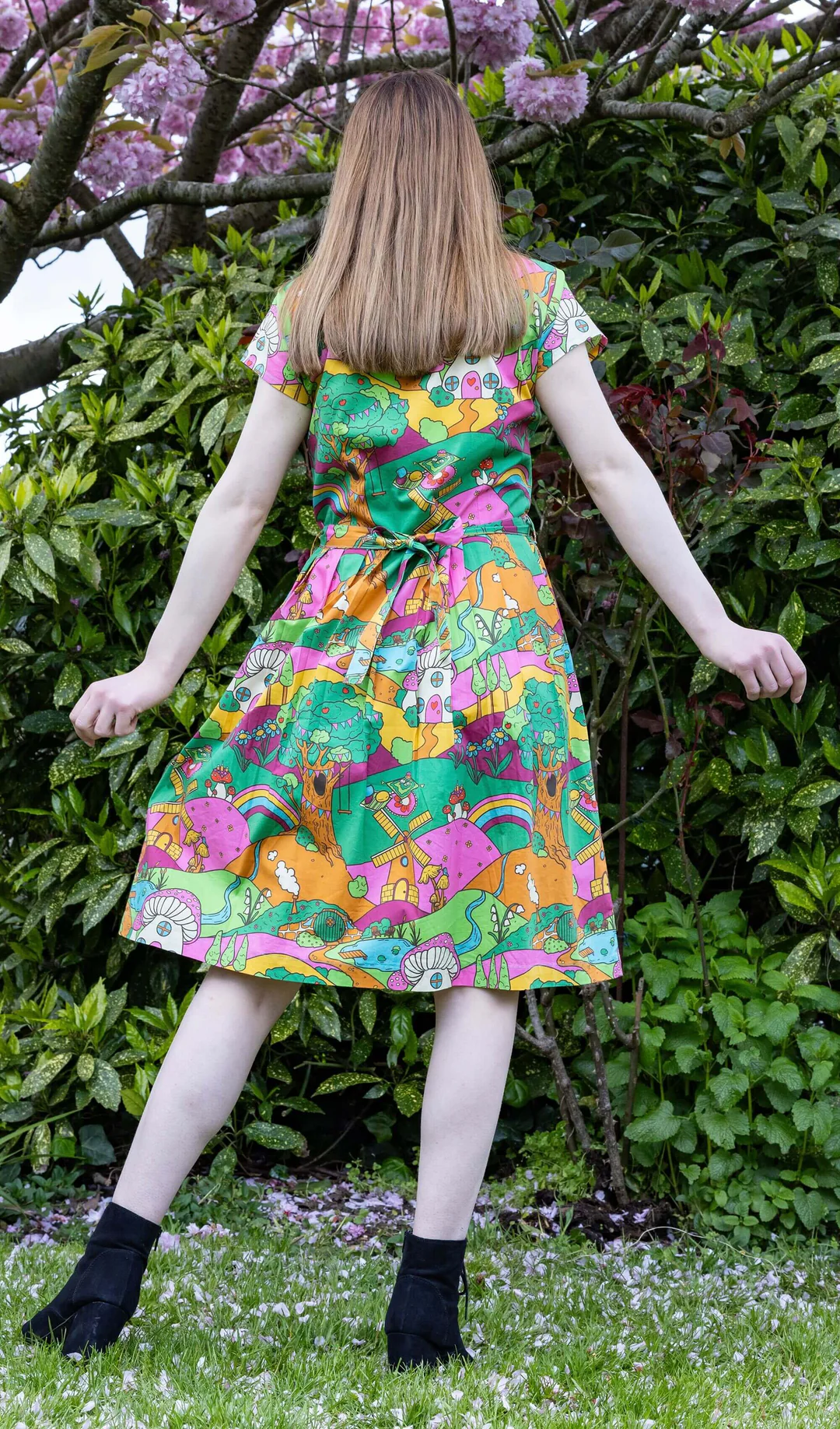 Get ready to elevate your style game with the Run & Fly x The Mushroom Babes Hills Tea Dress! This dress is made of our usual stretch cotton fabric, has a belted waist for a perfect fit, and convenient pockets for your on-the-go essentials.