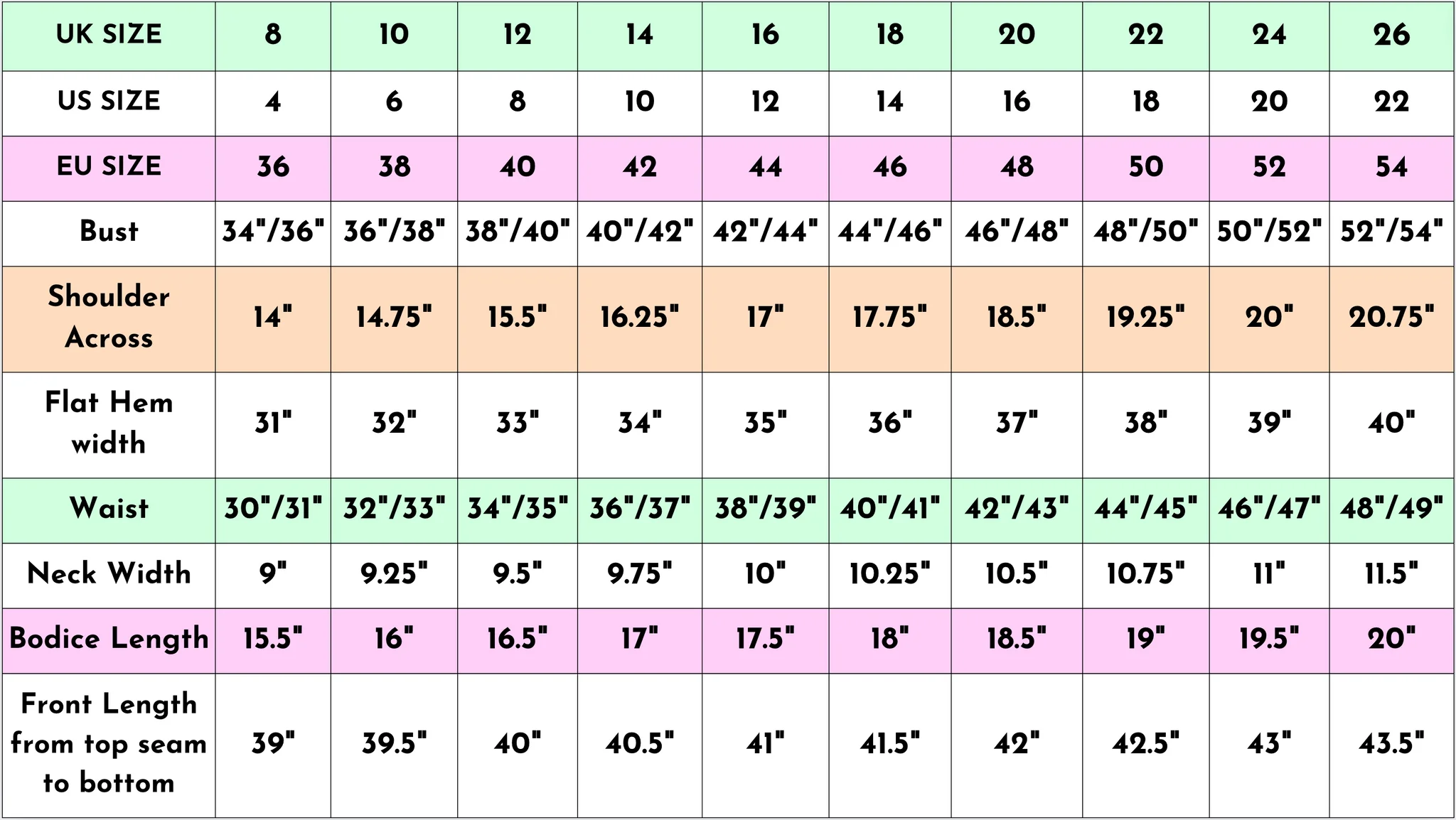 If you are using your own body measurements you may wish to add 1-2″ to allow yourself some movement in the garment.Â