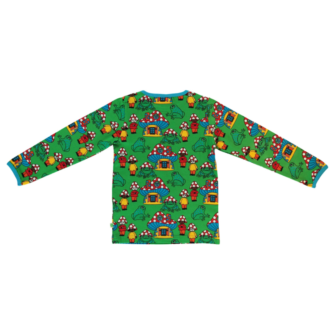 Long-sleeved top with mushroom houses, produced in an organic and stretchable cotton jersey. This top is OEKO-TEX Standard 100® certified, which means that the top has been produced and tested for harmful chemicals, to protect your child’s skin and health.