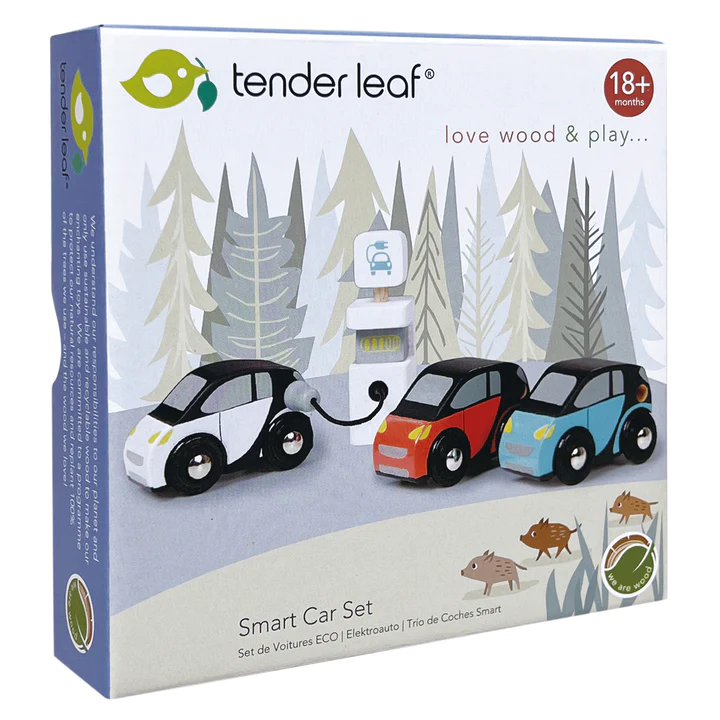 Embrace the future of transport with our 3 pretend electric smart car set and pretend charging unit. Each car has a little hole to plug in at the charging point. Compatible with our train track.