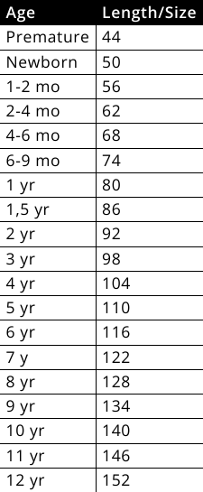 | Child Clothing Size | 122, 128, 134, 140, 146, 152 |