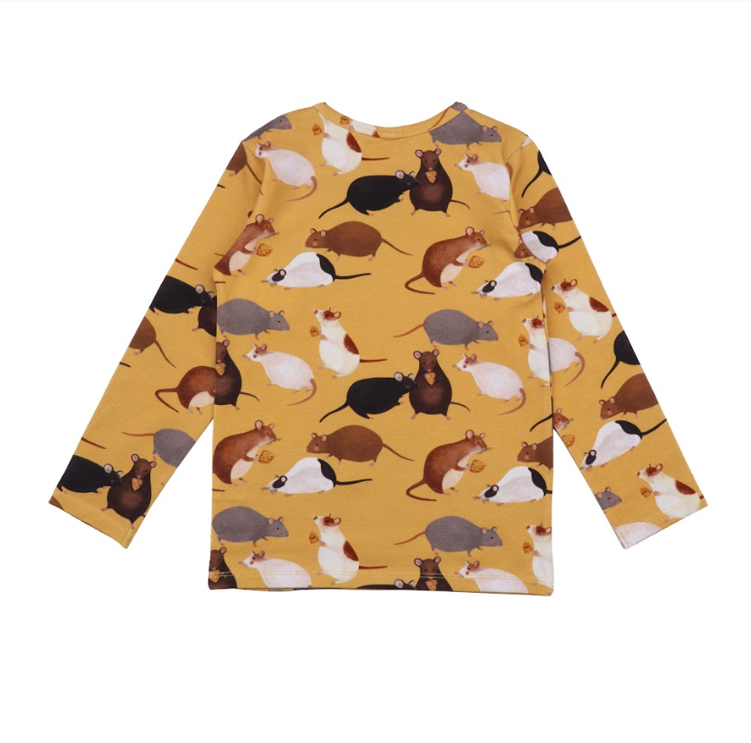 I just adore the stunning illustrations on Walkiddy clothes.  This beautiful long sleeved top is a gorgeous orangey yellow and features cute mice in brown, white and black.